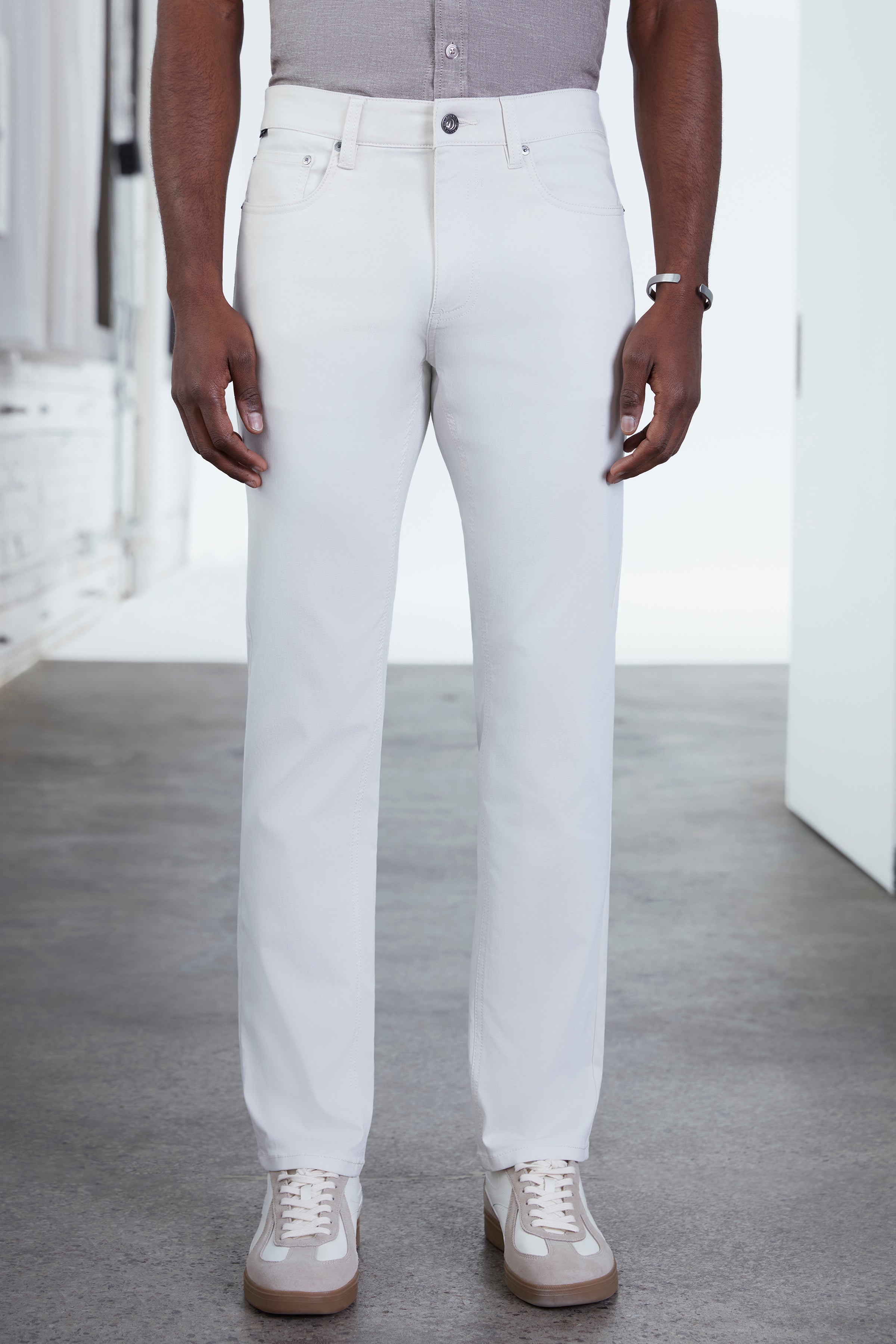 A contemporary essential designed for everyday refinement, this classic-fit 5-pocket pant is crafted from a premium stretch blend that delivers structure, durability, and exceptional comfort. The clean silhouette offers a modern yet timeless profile, making it easy to dress up or down. Engineered for versatility, it transitions seamlessly from professional settings to off-duty city wear while maintaining a sharp, polished look.