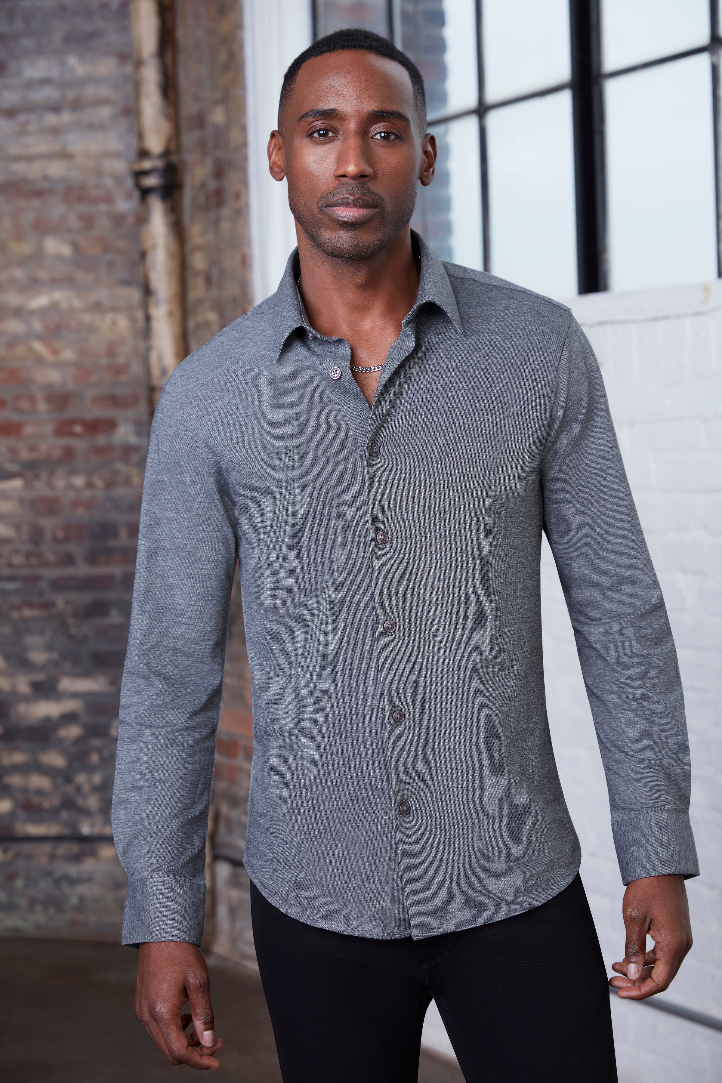 LONG SLEEVE PIQUEE STRETCH SHIRT