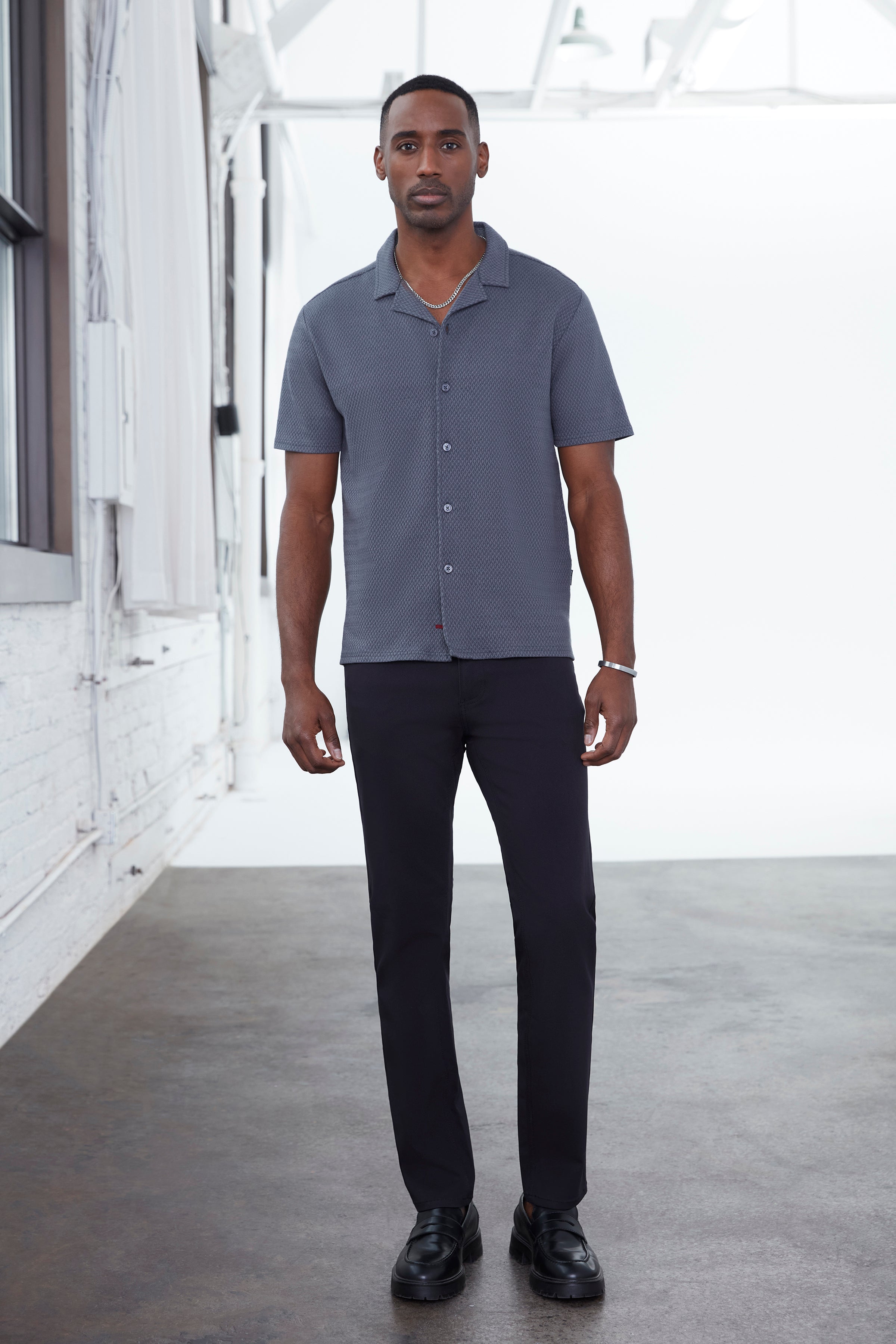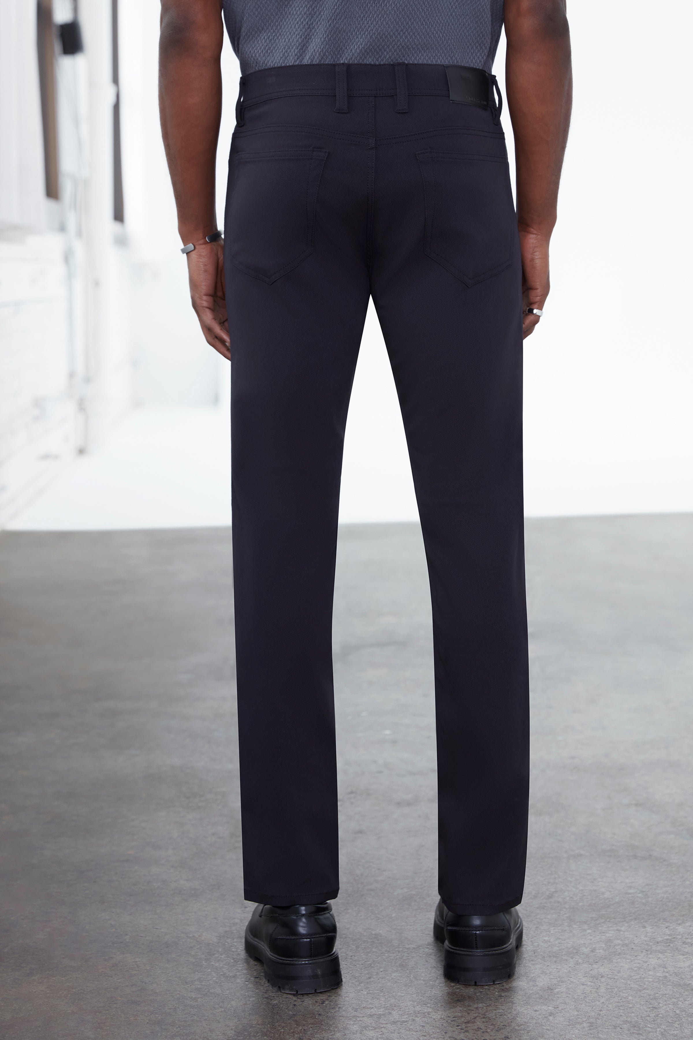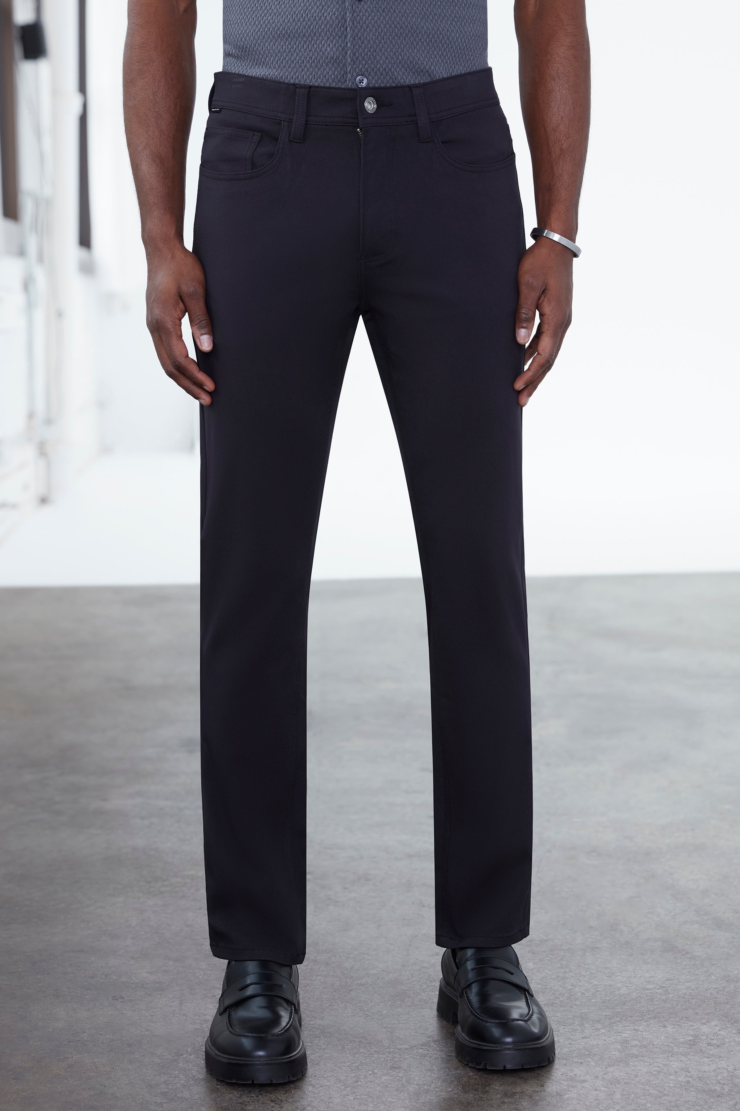 Version moderne du pantalon cinq poches au quotidien, ce modèle à coupe classique est confectionné dans un sergé cavalier structuré avec une touche d’extensibilité pour un confort durable. Son tissage dense offre une apparence raffinée tout en renforçant la durabilité, ce qui en fait un choix idéal autant pour le milieu professionnel que pour un style décontracté et soigné.