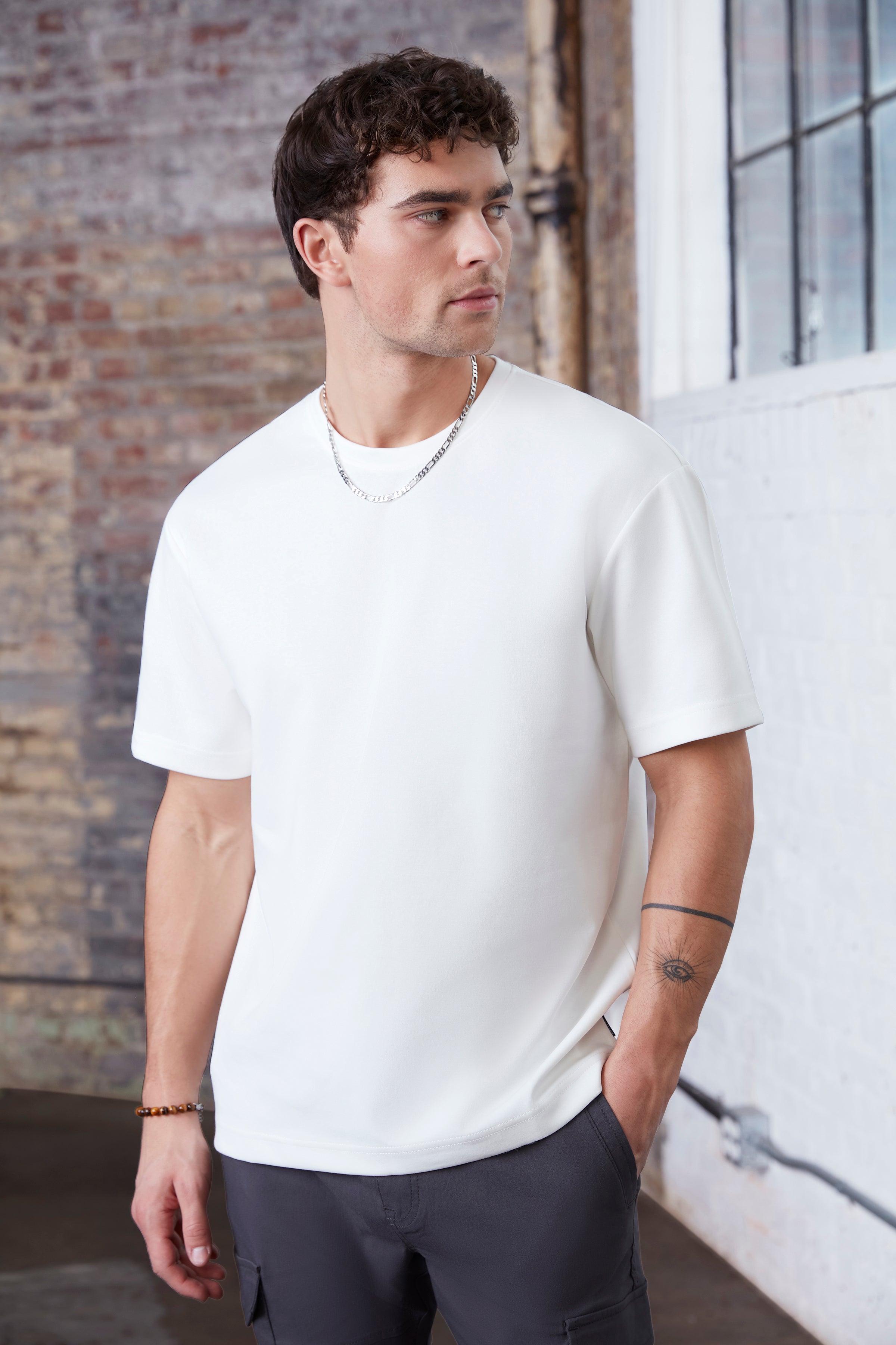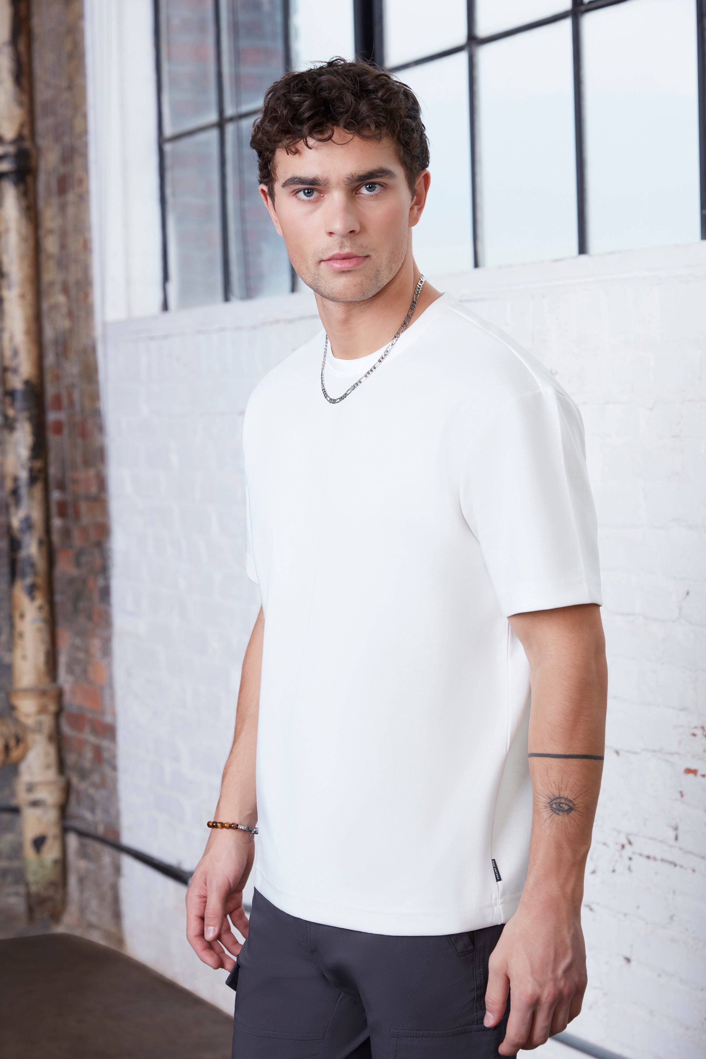 Conçu pour un style quotidien rehaussé, ce t-shirt à col rond et coupe décontractée est confectionné dans un jersey scuba haut de gamme offrant douceur, structure et un confort accru grâce à son extensibilité. Sa silhouette épurée et minimaliste crée une allure moderne, idéale à superposer ou à porter seule. Durable et raffiné, il propose un équilibre parfait entre performance et style, en faisant un essentiel du vestiaire urbain contemporain, facile à porter toute l’année.