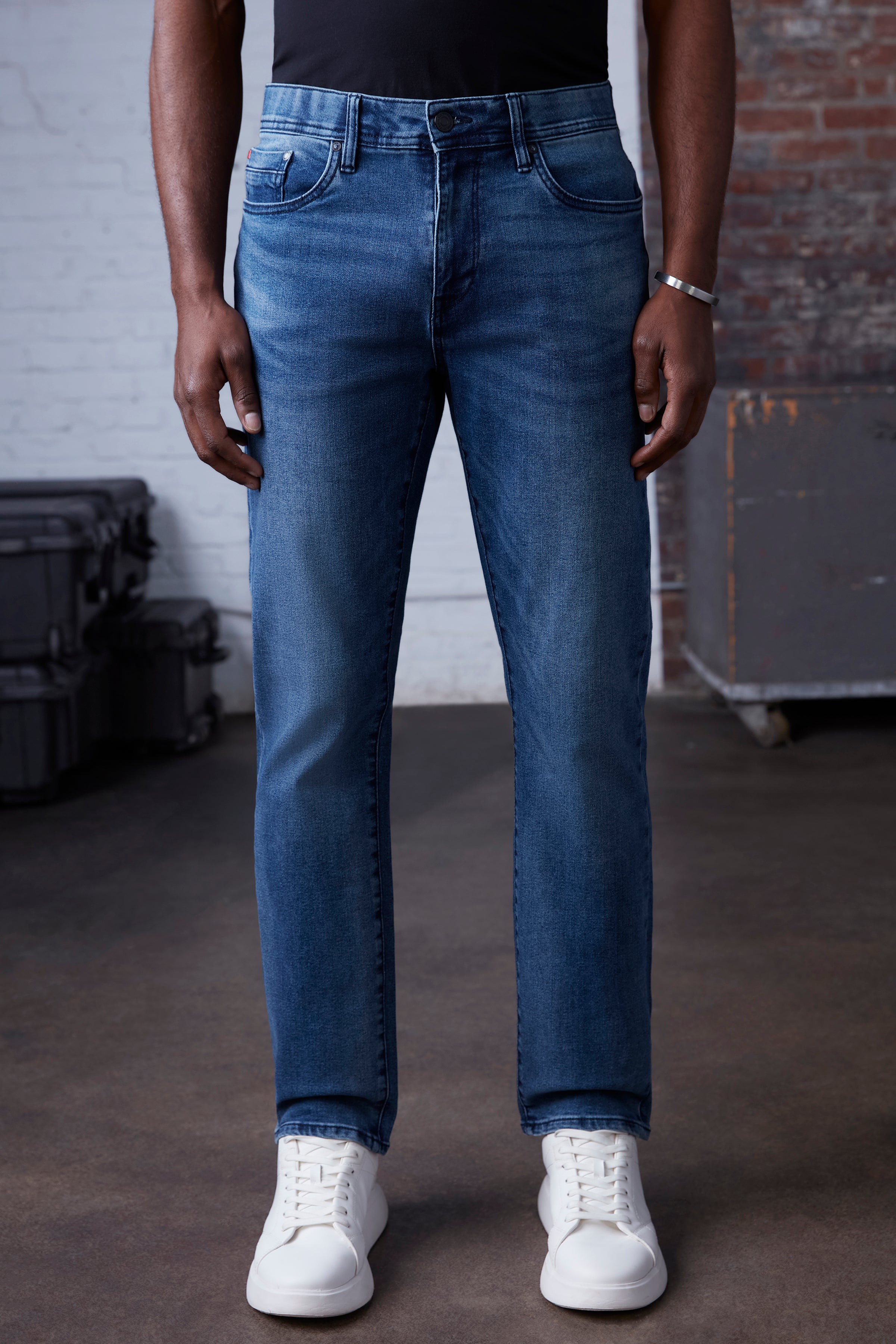 These athletic-fit jeans for men are designed to deliver comfort, flexibility, and a strong urban silhouette. Cut with extra room through the seat and thigh and a tapered leg, they support easy movement without losing a clean, modern profile. Crafted from stretch denim for everyday durability, they feature a bold indigo wash that pairs effortlessly with streetwear, casual layers, and elevated off-duty looks.