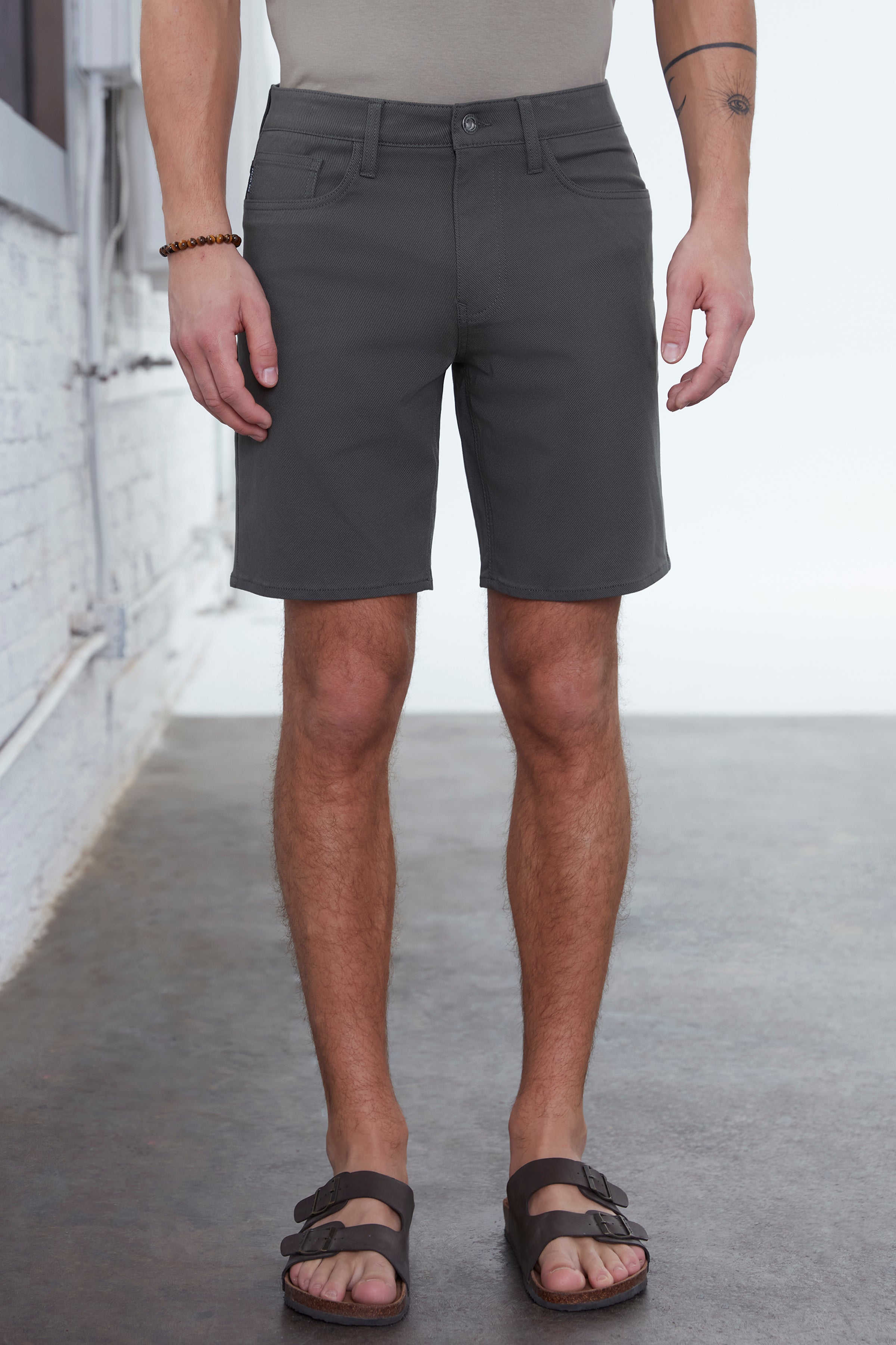 These five-pocket shorts for men are crafted from a structured stretch twill that delivers durability, flexibility, and premium comfort. Designed in a classic fit with a modern above-the-knee length, they create a clean, versatile silhouette suited for urban living. The timeless five-pocket styling adds everyday functionality, making them an essential for city wear, weekend plans, and elevated casual outfits with a refined edge.